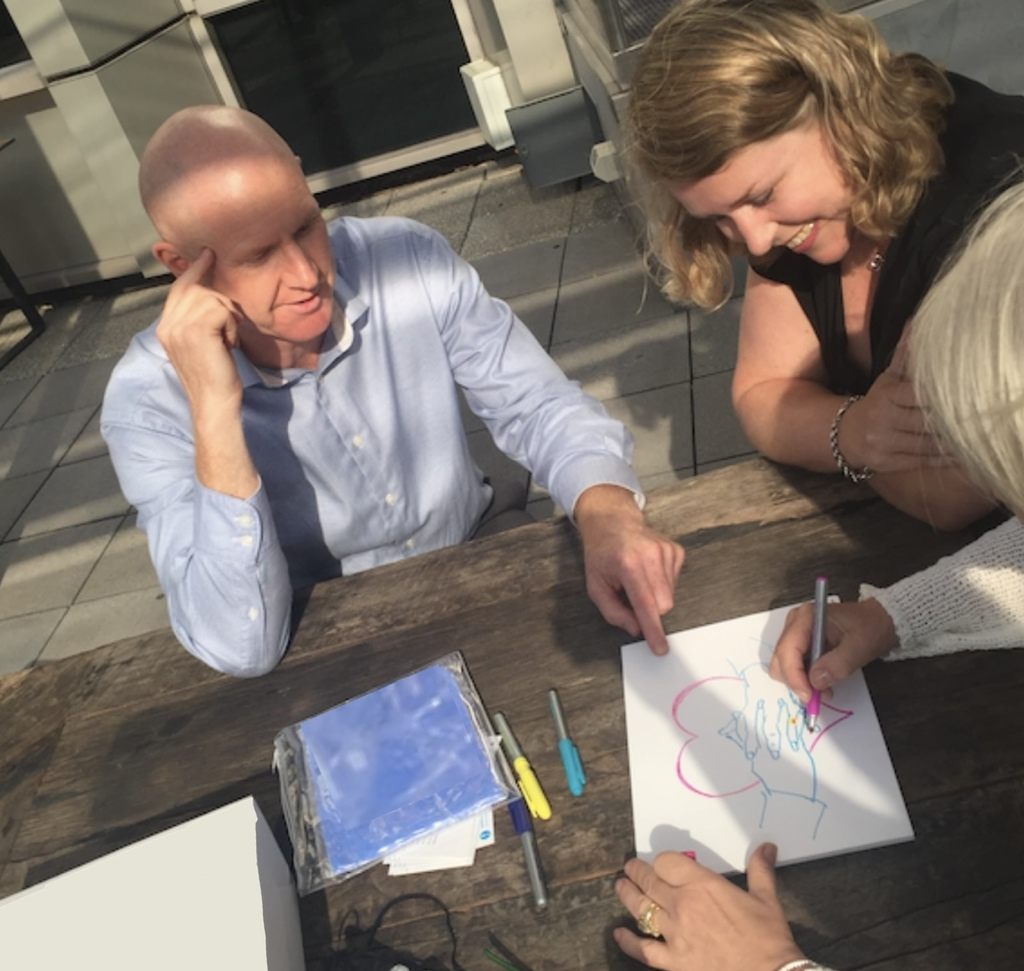 You have been provided with a number of permanent markers. Please implement the agreed-upon design concept on the artwork tile provided.